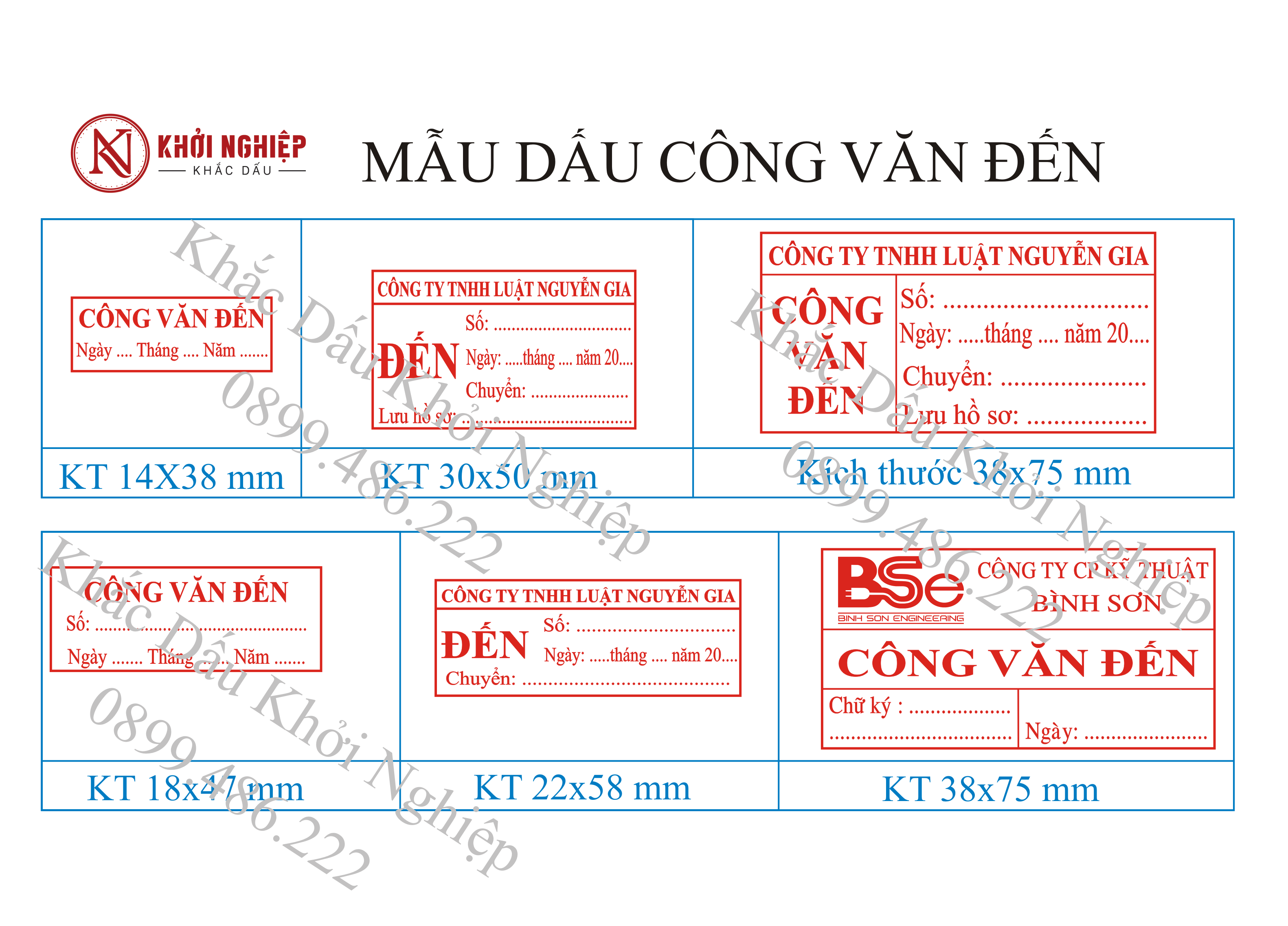 Dưới đây là một số mẫu dấu công văn đến/đi để khách hàng lựa chọn
