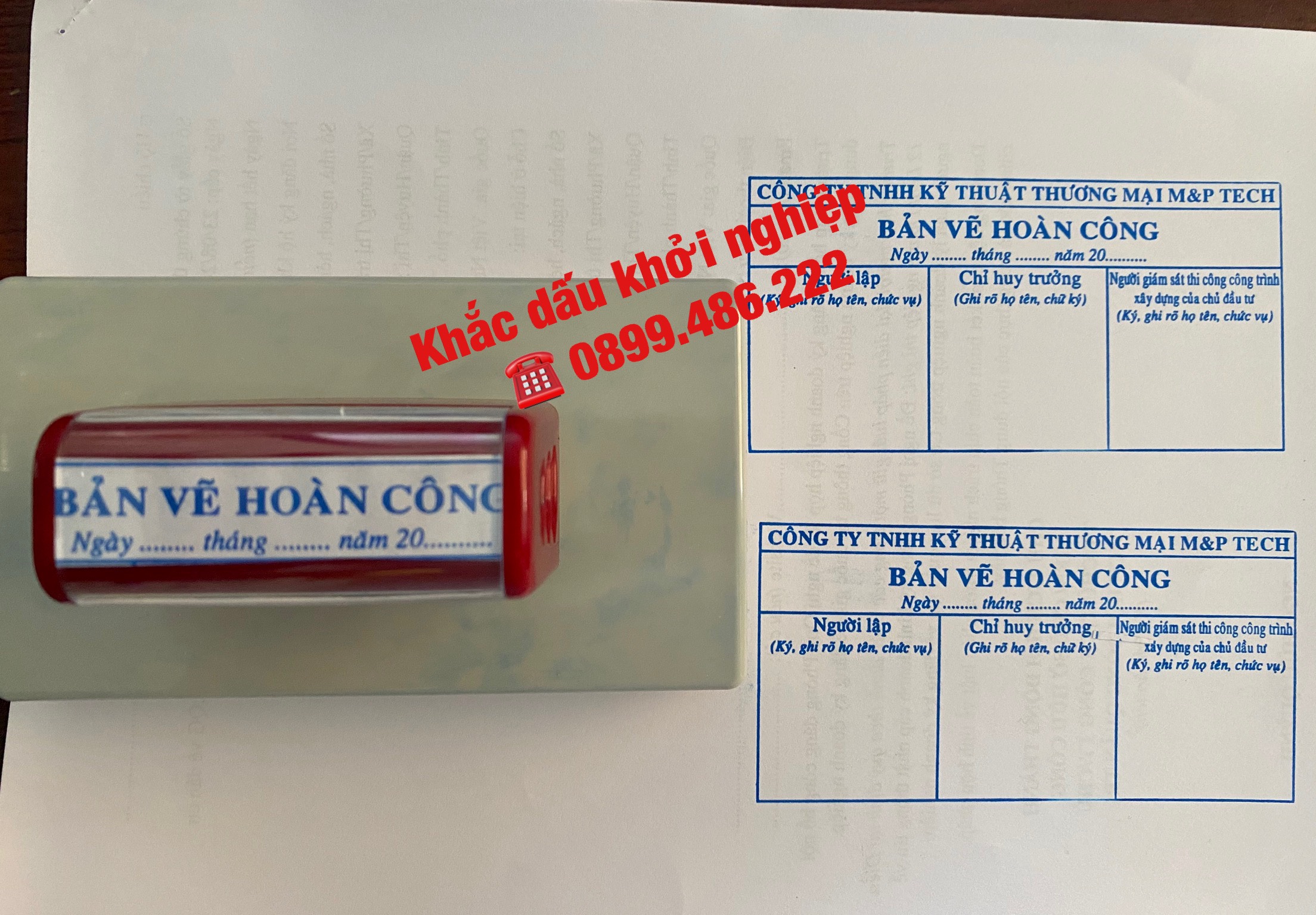 Đến với dịch vụ khắc dấu hoàn công liền mực của Khắc dấu khởi nghiệp, quý vị hoàn toàn có thể hoàn toàn yên tâm, con dấu chất lượng đảm bảo sử dụng lâu dài nếu bảo quản tốt, không dễ bị hư hỏng như các loại con dấu khác. Nếu quý vị đang cần đặt làm con dấu ngay bây giờ, vui lòng liên hệ hotline hoặc gửi tin nhắn với nội dung con dấu cho chúng tôi để nhân viên tiếp nhận và hỗ trợ ngay cho quý vị.