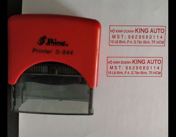 - Khắc dấu vuông của hộ kinh doanh cá thể. Nội dung con dấu cũng tương tự với con dấu mã số thuế công ty, bao gồm: tên hộ kinh doanh, mã số thuế và địa chỉ hộ kinh doanh. Màu sắc sử dụng chủ yếu là màu đỏ và kích thước được sử dụng thông thường là 22x58mm.
