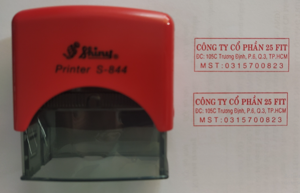 - Mộc dấu vuông mã số thuế công ty. Nội dung của con dấu này bao gồm: tên doanh nghiệp, mã số thuế, đại chỉ công ty. Kích thước là tùy vào nội dung để khắc, thông thường là 22x58mm. Màu sắc thường được khách hàng sử dụng là màu đỏ.