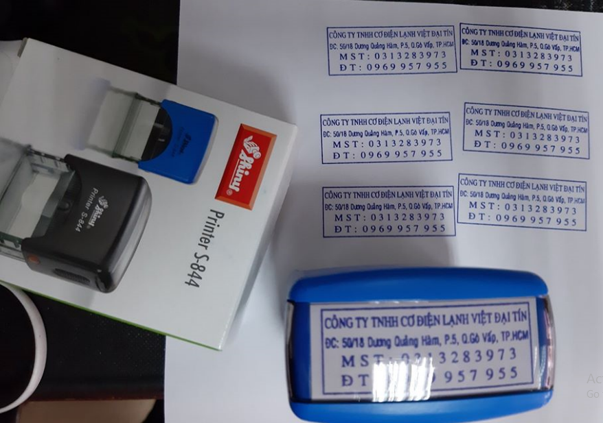 - Mộc dấu vuông mã số thuế công ty. Nội dung của con dấu này bao gồm: tên doanh nghiệp, mã số thuế, đại chỉ công ty. Kích thước là tùy vào nội dung để khắc, thông thường là 22x58mm. Màu sắc thường được khách hàng sử dụng là màu đỏ.